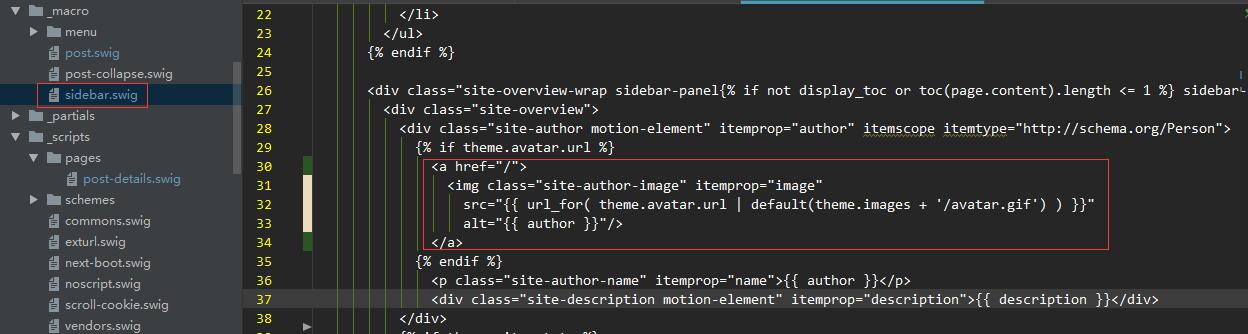 修改 \themes\next\layout_macro\post.swing 文件,将下面代码复制进去: